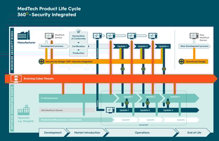 Infografik «Medtech Product Life Cycle – 360°-Security integrated»Picture_Content_MedTec-1